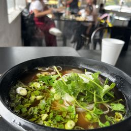 Came to eat lunch real quick at this cool little Vietnamese restaurant. Literally 5 things on the menu including vermicelli rice noodles with pork, beef or egg rolls. The other choice was pho. The kid taking my order was nice and knowledgeable, however I asked him for some sweet n low which was behind the counter. On another note I asked him for silverware and he said it's right therpointed in the direction to get it myself. So they don't set the table or bring silverware to you. Yeah, go ahead and reverse the tip. Great food but I'm not I'm coming back ??